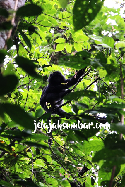 Baru beberapa langkah berjalan kami langsung disambut oleh sepasang lutung (Trachypithecus auratus) yang sedang mencari makan diantara dahan – dahan. Melihat hewan liar di habitatnya secara langsung tentunya menyenangkan. Saya mencoba mengeluarkan kamera dan memotretnya. Ah sayang, jepretan saya tidak terlalu bagus.Nampaknya saya masih harus banyak belajar lagi untuk memotret hewan liar.